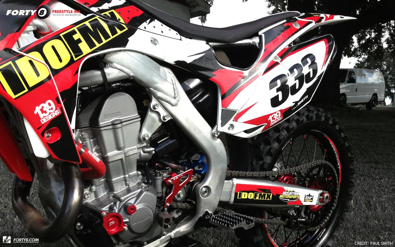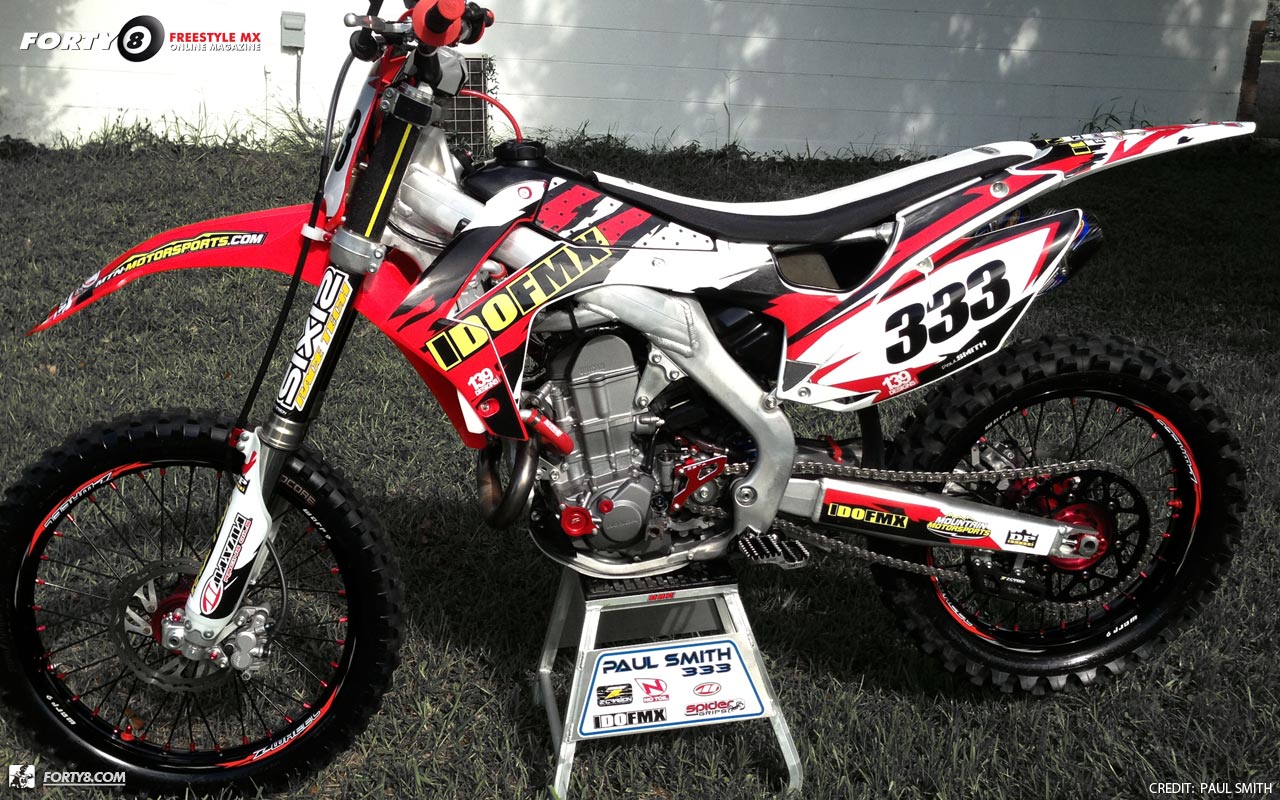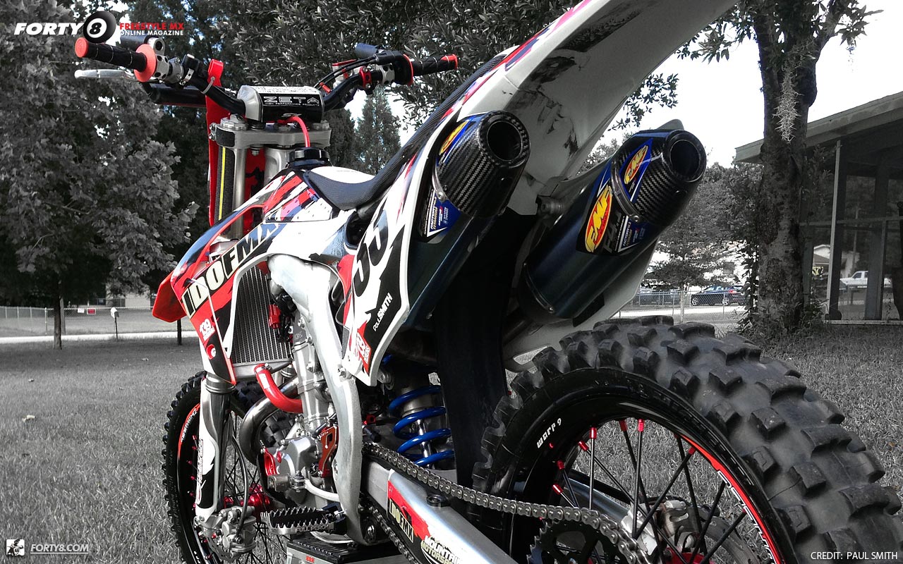 Jeff at FMF hooks the crf 450 up with a full Ti exhaust ... super bad ass !