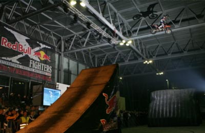 This year we had 5 RedBull Xfighter Teaser demos in the 10 days that we were there. Last year the guys had very good weather. Unfortunatley for us this year 8 of the 10 days was rain, rain, rain! Two of the shows in Kiev were moved in to a Large hall with just enough height clearest to jump 20meters. We made all our calculations, double checking are measurments to convince our selfs that we were not going to hit the beams across the roof! Now the moment of truth.... The first jump! It was fine, close but fine! The show was a sucess we were out the terencle rain that didnt stop and the crownd that had packed in to the hall were pumped!