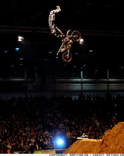 At full throttle we started in the new year with the SX Cup Final in Dormund\"The same procedure as every year“. We had an awesome audience and the arena went mad on all the event days while watching finest FMX. The Arena was sold out at all days - that´s a record- and it´s crazy that the SX in Dortmund seems to get better and better each year. Respect Dortmund. The SX and FMX track was good planed and shaped so all looked that riding will be FUN and we had Fun on all days. For the FMX part there was Remi, Martin Koren, Lance Coury, Jose Miralles, Nick de Witt and me and i think we did a really good job because of getting many standingOvations und Laola waves. Dotrmund is like allways the best SX/FMX Event in Germany and it´s always cool to be a part of this event. You can check some impressions on CPM24 . They filmed theTraining too and of course the main parts.