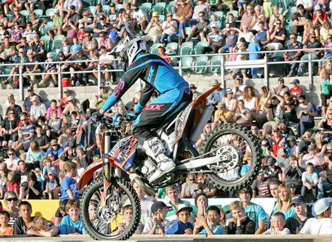 I’m back home now in Brisbane and heading to Perth tomorrow to put on a cool FMX show in Perth which has a 120 foot ramp. It’s not very often in Australia that there is a 120 foot show, so it will be very interesting. I haven’t jumped one of the ramps yet, so I’ll be trying to get some practice in on the Friday before the show and get used to it. I’m also giving away one of my Valyside graphics kits that I didn’t use on my old Yamaha, and now that I ride KTM I don’t need it, so one lucky winner can put it on their YZ250.