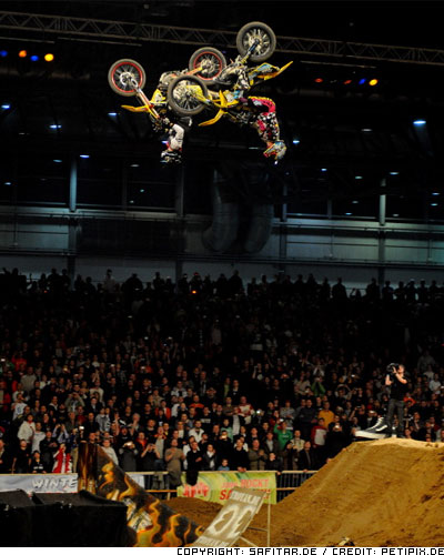 spectacular ond a bike (or at least kind of a bike...): FMX, BMX, MTB, Minibike races and FMX, Speed & Style, Highest Air, Whip, FMX Evolution with all the gnarly flipcombos and also stuntbikes, trialbikes and Hugo Arriazu as Quad-backflipper and Stian Pedersen flipping the snowmobile. Everybody was pretty happy about the show and the organisation and we also sold out the first day and nearly sold out the second. So all in all it was a great success and now we can build up from it for the future.