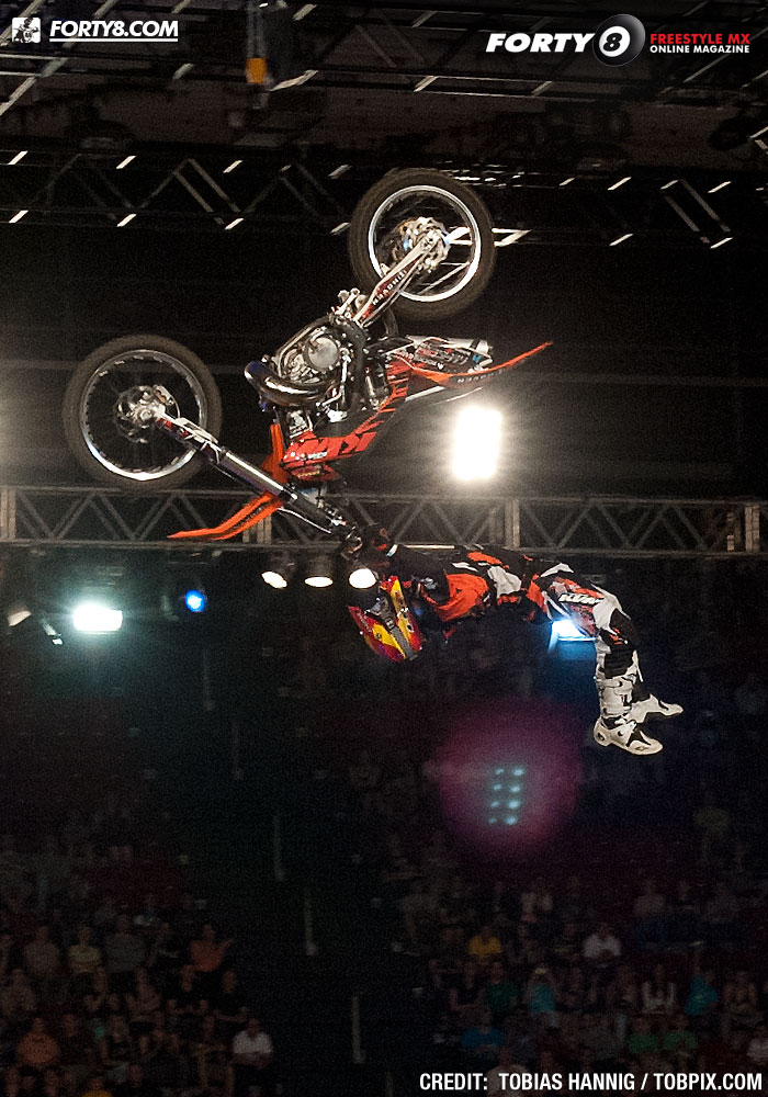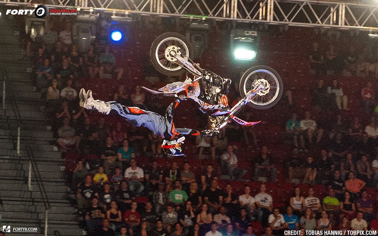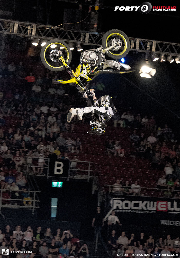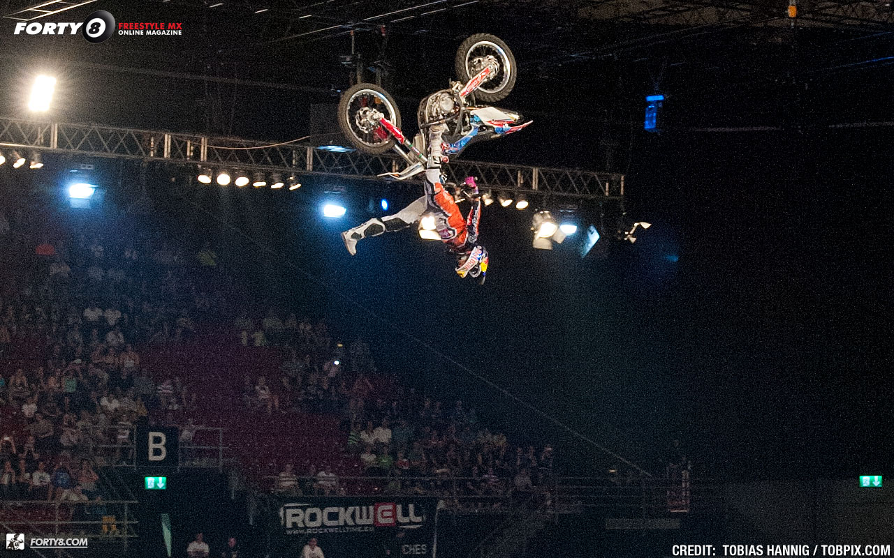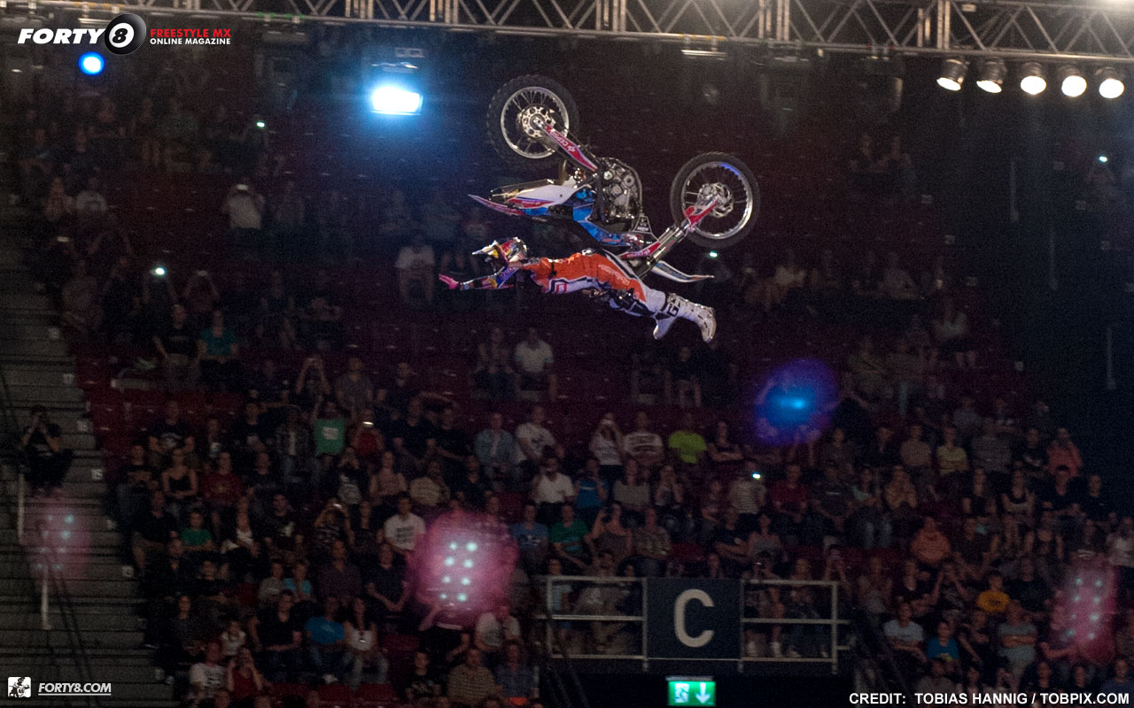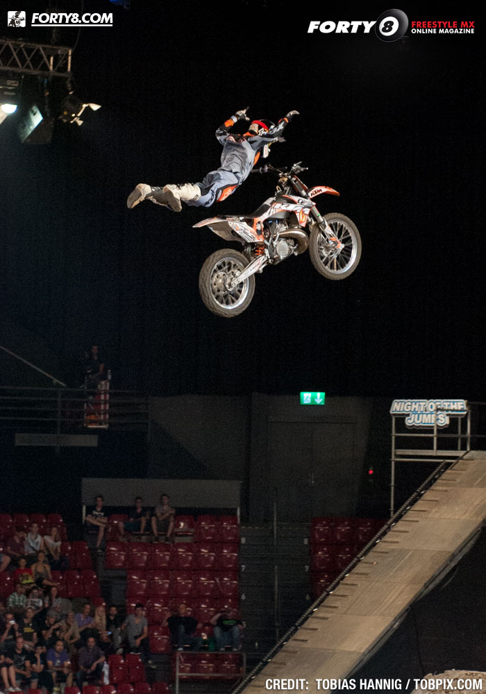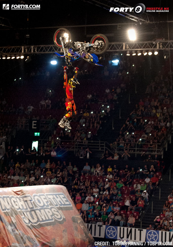 NIGHT of the JUMPS now goes into a short summer break and will resume on 18th August with the seventh round of the FIM Freestyle MX World Championship in Beijing. Meanwhile, Swiss freestyle motocross fans should mark the weekend of 28th/29th March 2014 in their diaries. That’s when NIGHT of the JUMPs returns to the Sankt Jakobshalle in Basel for the eighth successive year.