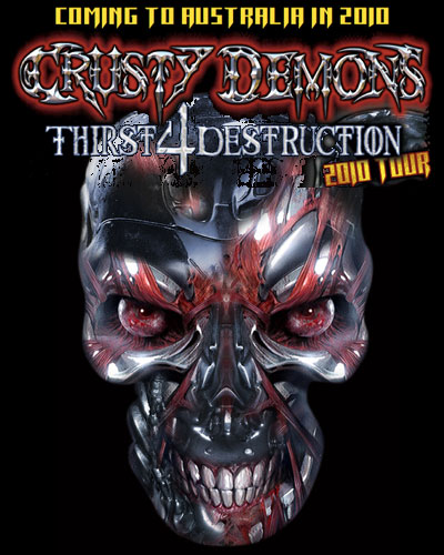 Get ready for the most exhilarating, electrifying and action packed Crusty Demons tour to date! It’s Australia’s chance to see the one-and-only, original Crusty Demons in THIRST 4 DESTRUCTION in Perth, Adelaide, Melbourne, Sydney & Brisbane in May and June 2010.